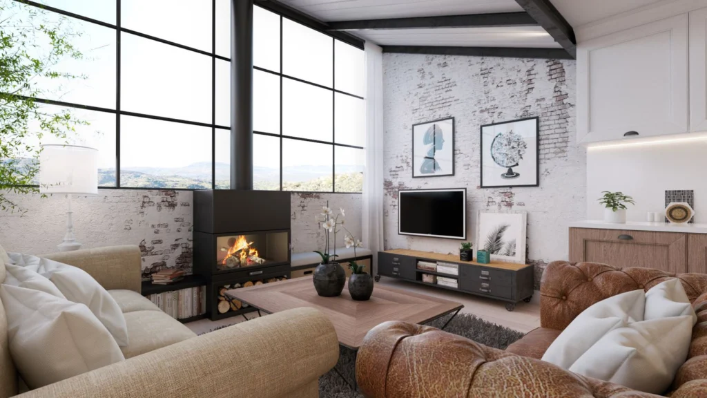 Proyecto de un loft con un estilo industrial de espacios amplios y techos altos e inclinados que nos favorece para crear ese diseño típico neoyorquino que buscaba el cliente. Se utilizaron tonos marrones, la piel y el color antracita, el metal, y la madera recuperada, para generar ese ambiente acogedor, y se colocó una iluminación que favoreciese esa sensación.